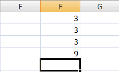 - Press Enter. Excel adds cells F1 through F3 and displays the result in cell F4.