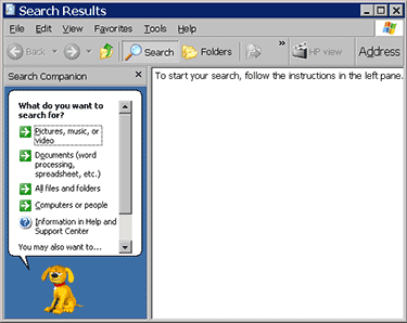 Windows XP enables you to quickly locate files and folders on your drives. The search option provides you with four search options: Pictures, music, or video; Documents; All files and folders; and Computers and people. To quickly find a file or folder: