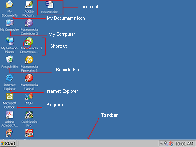 | My Computer | The My Computer icon provides access to the resources on your computer. You can access your drives and other peripherals by clicking on the My Computer icon. |